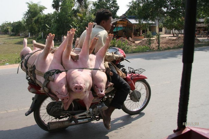 運ばれていくブタちゃんです。