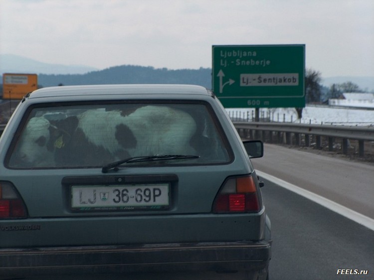 高速道路を走っていると、前のワーゲンに何か積まれているのが見えました。近づいてよーく見てみると、とんでもないものを積んでます!