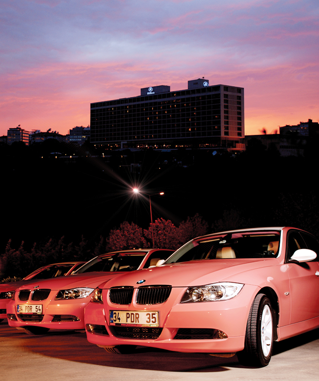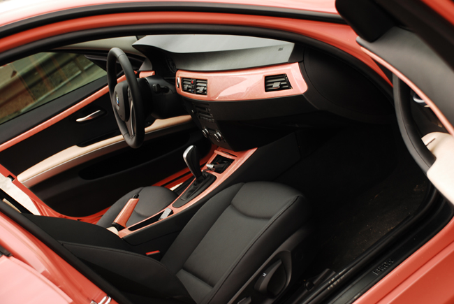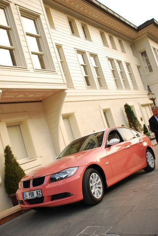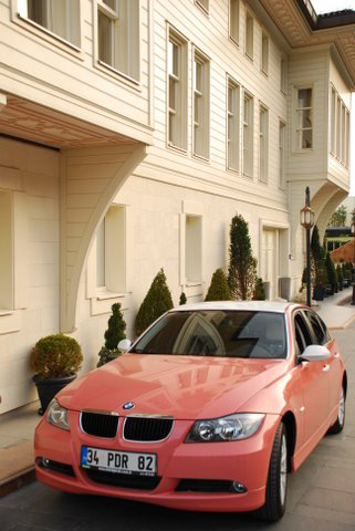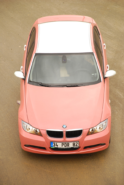 ピンクのBMW 3シリーズは当然純正色ではないですが、