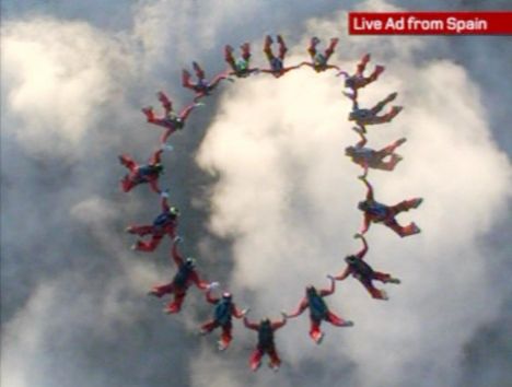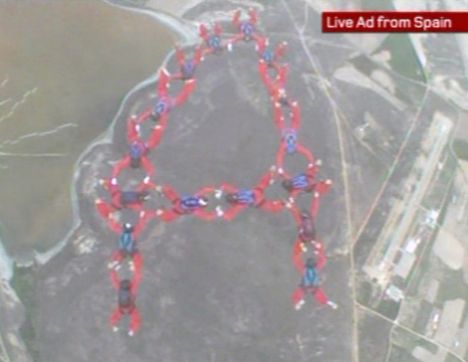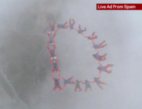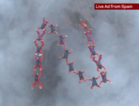スカイダイバー・チームが、3分20秒をかけてマドリードの上空でブランド名「HONDA」(ホンダ)の 文字を順次描き出していったのだ。ヨーロッパ・チャンピオンのフィル・カーティス氏を含め、4人の 世界チャンピオンと9ヶ国のチャンピオンを集めたスペシャリストのチームである。 演技は成功裏に終わったが、悪天候で飛行できなかった場合のために一応、テープの予備も 準備していた。