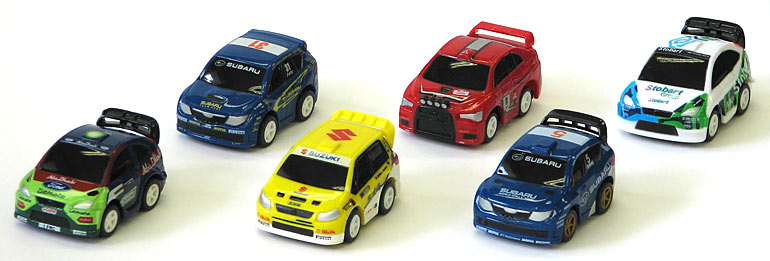 プルバックカーは、フォード・フォーカスRS WRC07(BP FORD ABUDHABI WRT)、フォード・フォーカスRS WRC07(STOBART TV M-SPORT FORD RT)、スズキSX4、SUBARUインプレッサWRX STI、SUBARUインプレッサWRC2008、三菱ランサーエボリューションXの全6車種となっている。