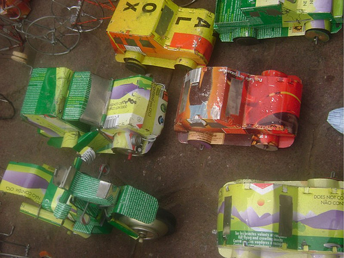 炭酸飲料の空き缶を使ったオモチャです。しかし器用に作りますね。