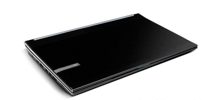 光沢ブラックのボディにはパッカードベルの新ロゴが施され、15.6インチ・ワイド型液晶ディスプレイには画面枠とボディとの境界がないフラッシュ・サーフェスのデザインが採用されている。操作部周辺は艶消しブラック、キーボードとマルチジェスチャー・タッチパッドはシルバーで仕上げられている。