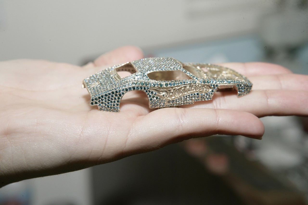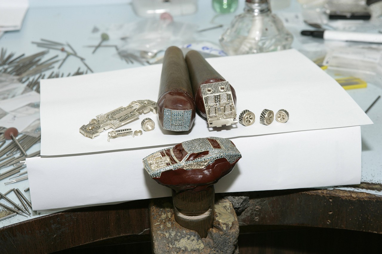 ダイヤモンドを2700個以上(合計約23カラット)使用しているほか、テールライトにはルビーを使用するなど、宝石をふんだんにあしらった。ボディ下部も宝石で埋め尽くしている。
