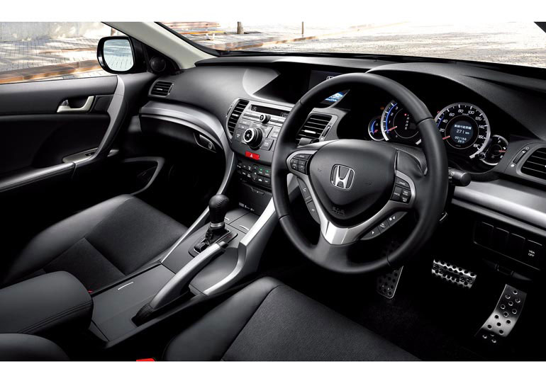 エンジンは206馬力の2.4リッターDOHC i-VTECを搭載。ミッションは5速AT+パドルシフトを標準装備。さらに、コーナリングGシフトを採用。コーナリング時に起きていたオン/オフでの不要な変速が押さえられ、MT感覚の走行が可能となる。