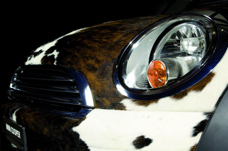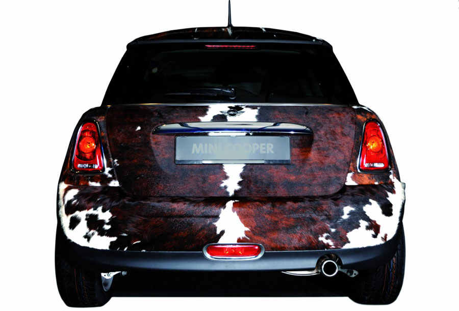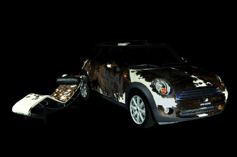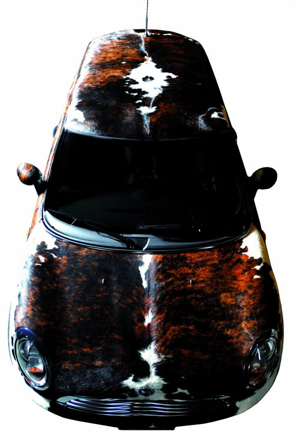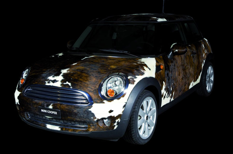 ミニクーパーのボディーが、なにやら怪しい柄になっています。