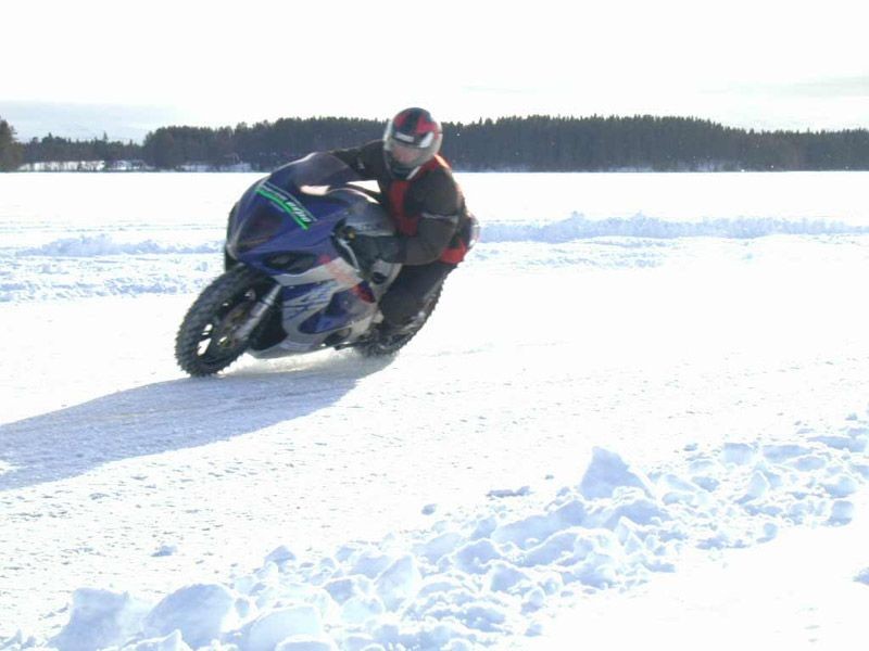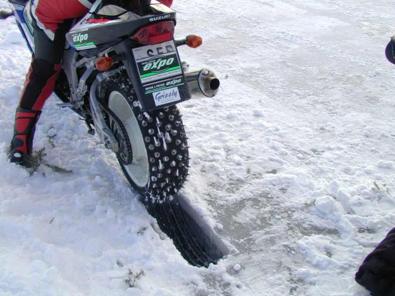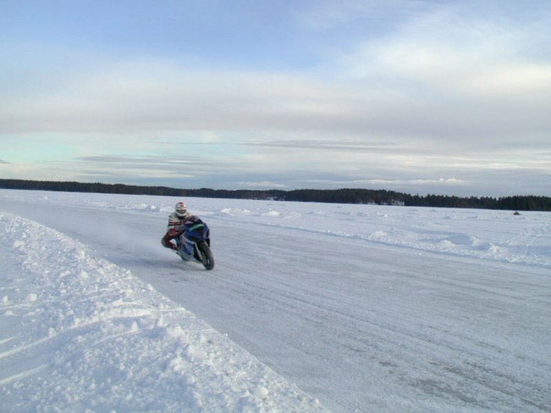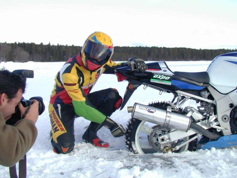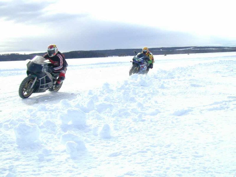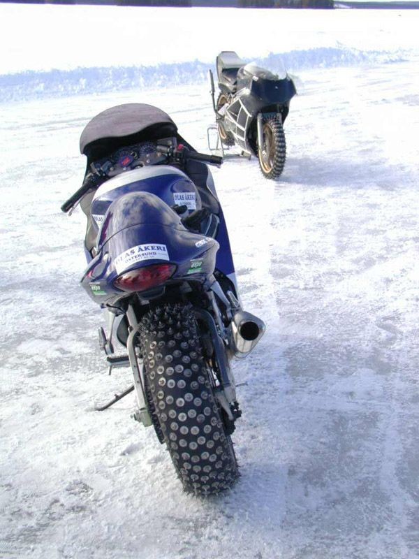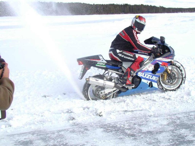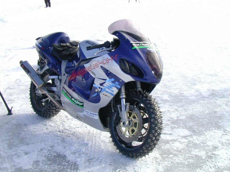 SUZUKIの隼にスパイクタイヤを装着して、氷の上を疾走しました。