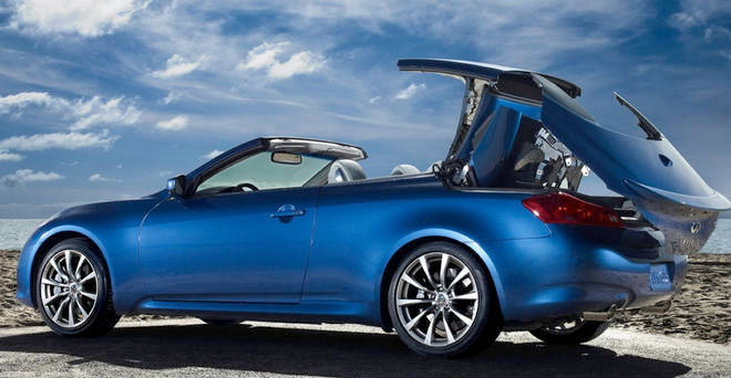 G37コンバーチブルは、昨年11月のロサンゼルスモーターショーで初公開。クーペとオープンが約30秒で切り替えられる電動メタルルーフを装備しているのが最大の特徴だ。