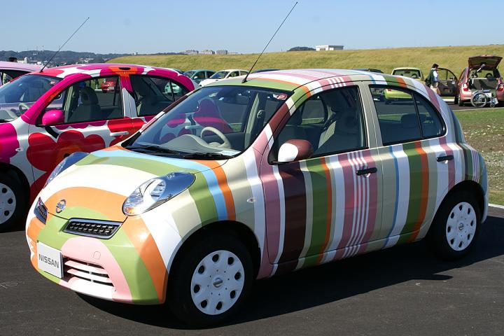 フィンランドのファブリックブランド「marimekko(マリメッコ)」がプロデュースした「花咲かマーチ」が展示されます。カワイイ車ですね。