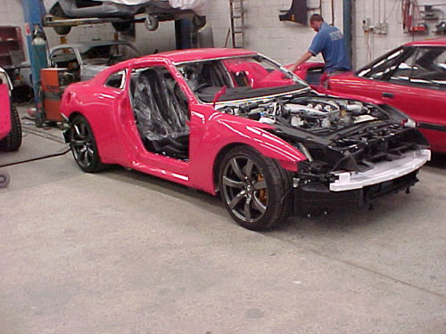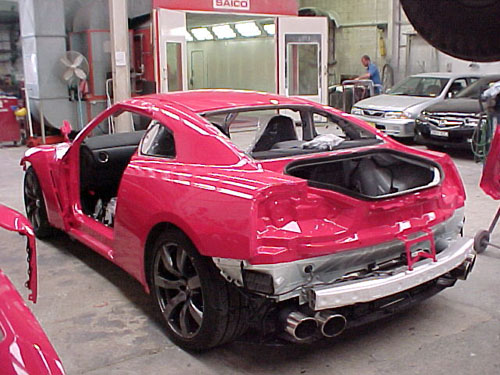 NISSAN GT-R R35をホワイトからピンクにオールペイントしました。