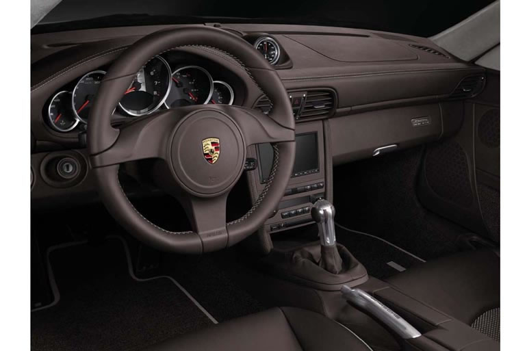一方インテリアには、これまでポルシェが使用したことのない新素材をふんだんに採用。スポーツシートのシートセンター部とドアパネルには、帯状のスムースレザーと編み糸で作られた、ウーブン・レザーが用いられている。また、ダッシュボードはエスプレッソ・カラーのナチュラルレザーとなっており、専用のボディカラーであるスポーツクラシックグレーと、明確なコントラストを形作っている。