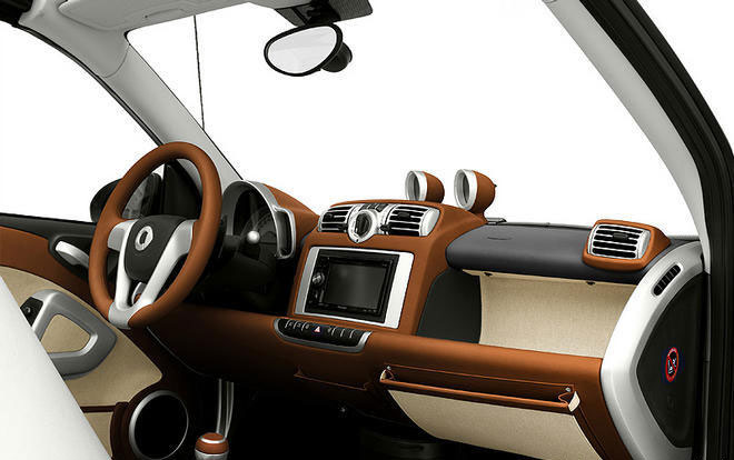 エルメスは2008年3月のジュネーブモーターショーでブガッティとタイアップし、『ヴェイロン』のエルメス仕様を発表。今回のスマートにも、エルメスらしい上品で洗練されたイメージがふんだんに発揮されている。