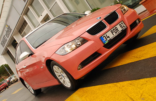 ピンクのBMW 3シリーズは当然純正色ではないですが、